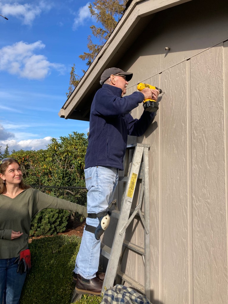 New HOA sign now installedThe siding was in poor condition and way past it’s primeA worker conducting a roof inspection to confirm its conditionThe installation of the new fasteners received careful, detailed attention.Jon with the new access panels now allows inspection without the removal of the entire wallJon stands beside the newly restored pump house, now finished with fresh primer and paint.