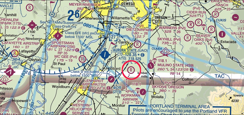 A: OR41 is a private airstrip located just outside Aurora State Airport’s (KUAO) Class D airspace, and well outside Portland’s Class B Mode C veil. That means: ADS-B Out is not required in that airspace below 10,000 feet MSL, as long as you’re also above 2,500 feet AGL or in low-density airspace. It is in Class E airspace at most altitudes.